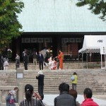 七五三の参拝者で賑わう廣田神社の境内では、宮司さんから廣田神社の説明を いただきました。