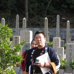 お墓の中をゾロゾロと行った先は、通称手振り地蔵と言われるマリを持った女の子のブロンズ 像の前。