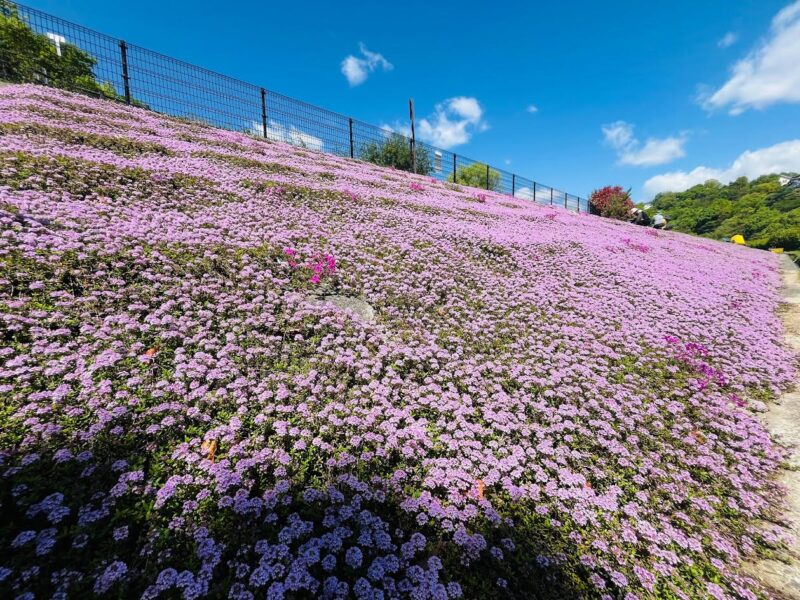 長年、芝桜が植えられていましたが、2024年からタイムロンギカリウスに植え変わりました。