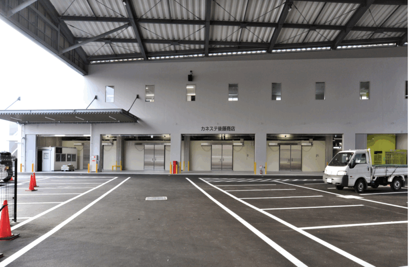 国道二号線に隣接した立地にある西宮地方卸売市場は現在10業者が入居し、二号線沿いには2店舗の小売店が入っている。
