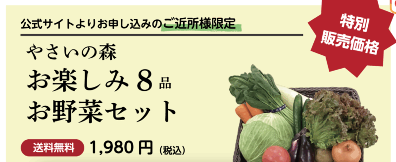 エリア限定のお楽しみ8種野菜セット1980円コースは、単発で欲しい時だけの注文でOK!