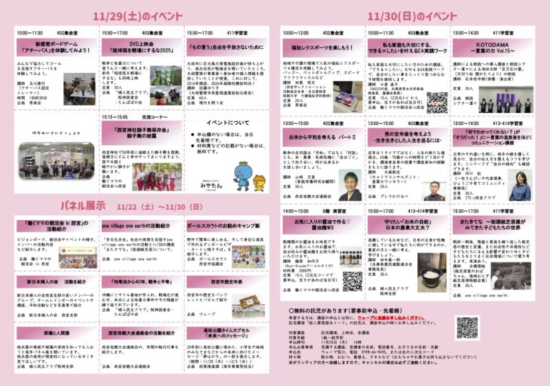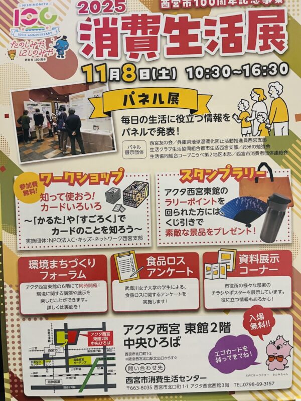- 11月8日(土)消費生活展@アクタ西宮東館2階中央広場