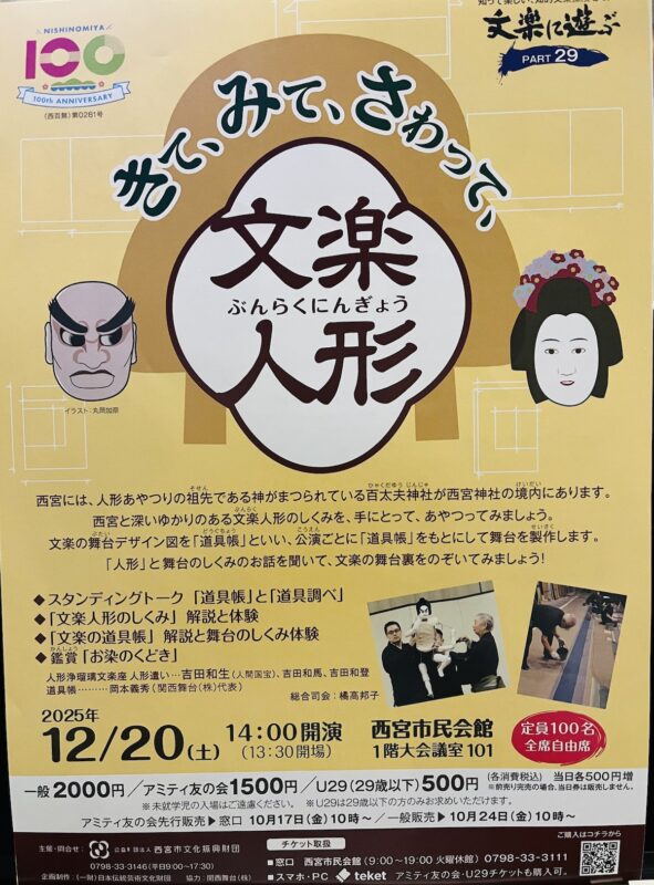 - 12月20日(土)きて、みて、さわって、文楽人形@西宮市民会館1階第会議室