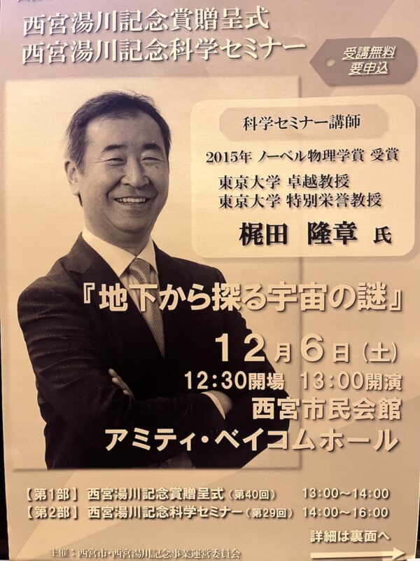 - 12月6日(土)西宮湯川記念科学セミナー『地下から探る宇宙の謎』@アミティベイコムホール