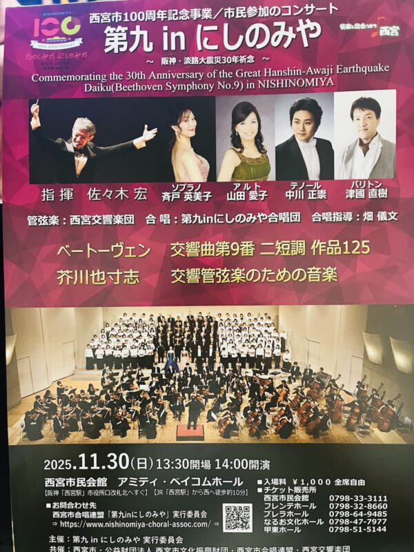 西宮市制100周年記念事業「市民参加のコンサート『第九inにしのみや』~震災30年祈念~」
