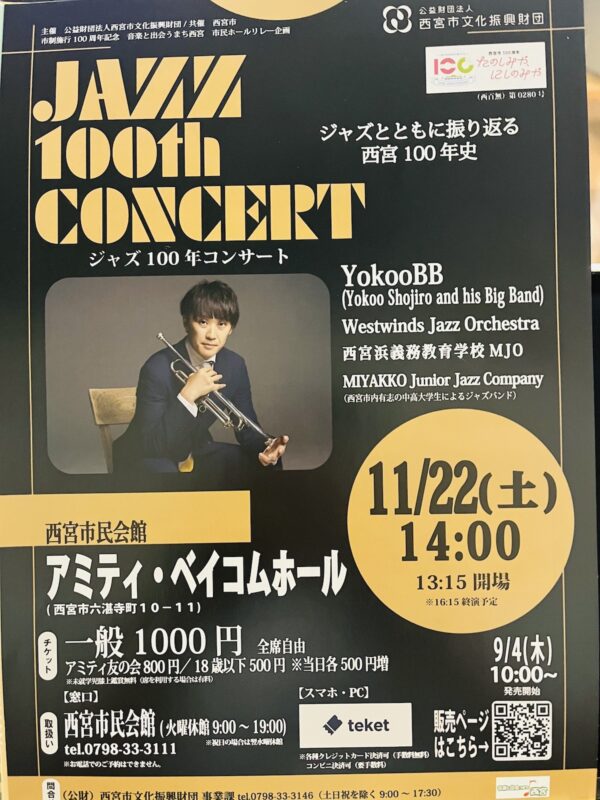 - 11月22日(土)ジャズ100年コンサート@アミティベイコムホール
