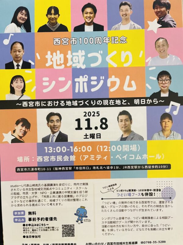 - 11月8日(土)地域づくりシンポジウム〜西宮市における地域づくりの現在地と、明日から〜@西宮市民会館