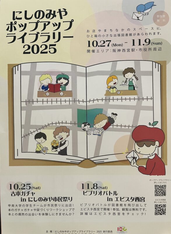 - 10月27日〜11月9日:にしのみやポップアップライブラリー開催