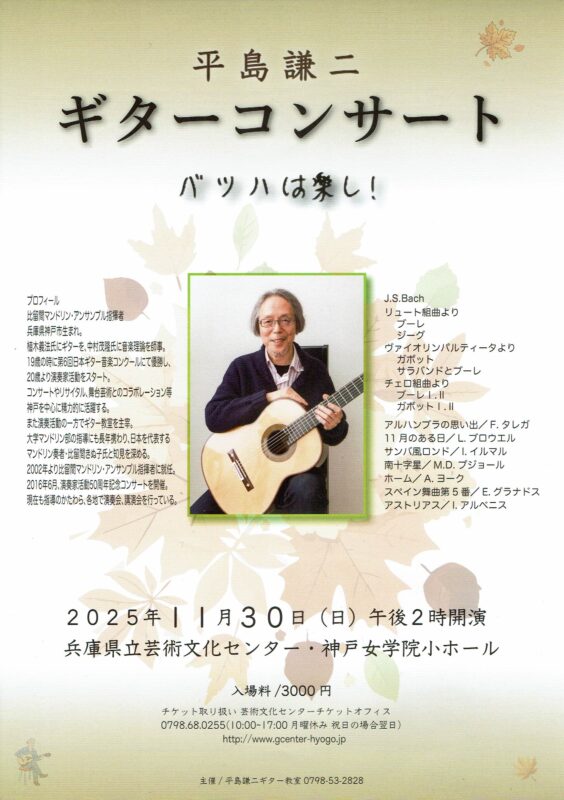 プレゼント11月30日(日)平島謙二ギターコンサート