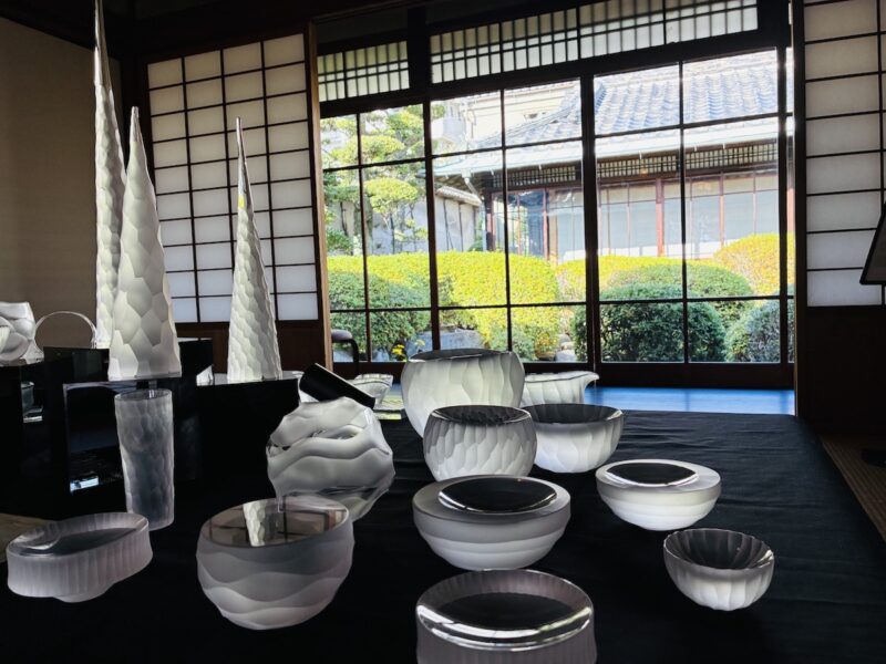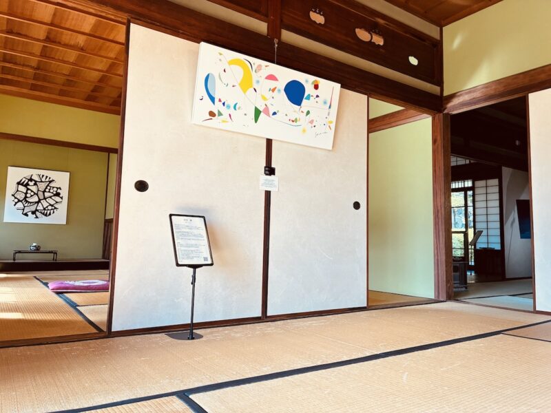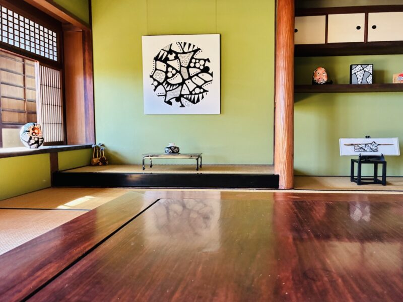 8人のアーティストのさまざまな絵画あり、ガラス作品あり・・・築100年以上になる歴史ある和室の中でその作品を楽しんだ。
