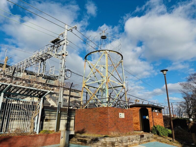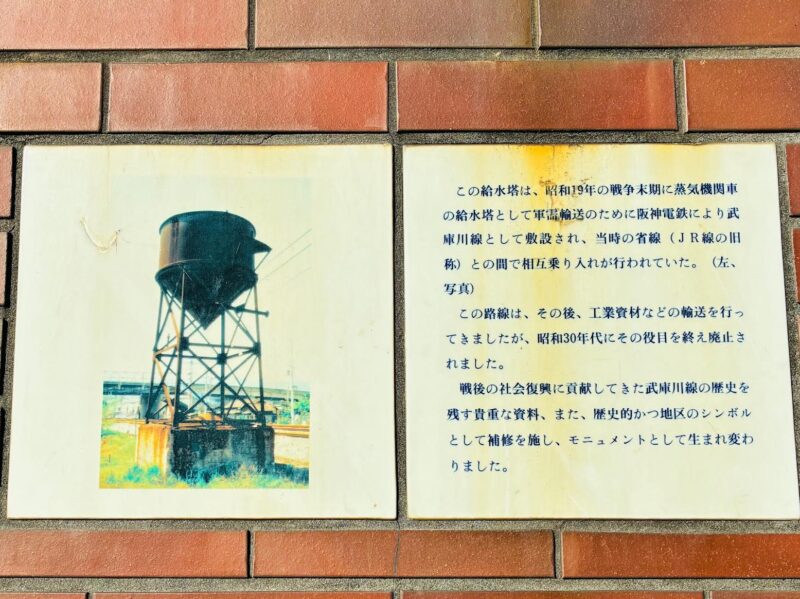 蒸気機関車への給水塔がモニュメントとして置かれている「甲子園口SL公園」