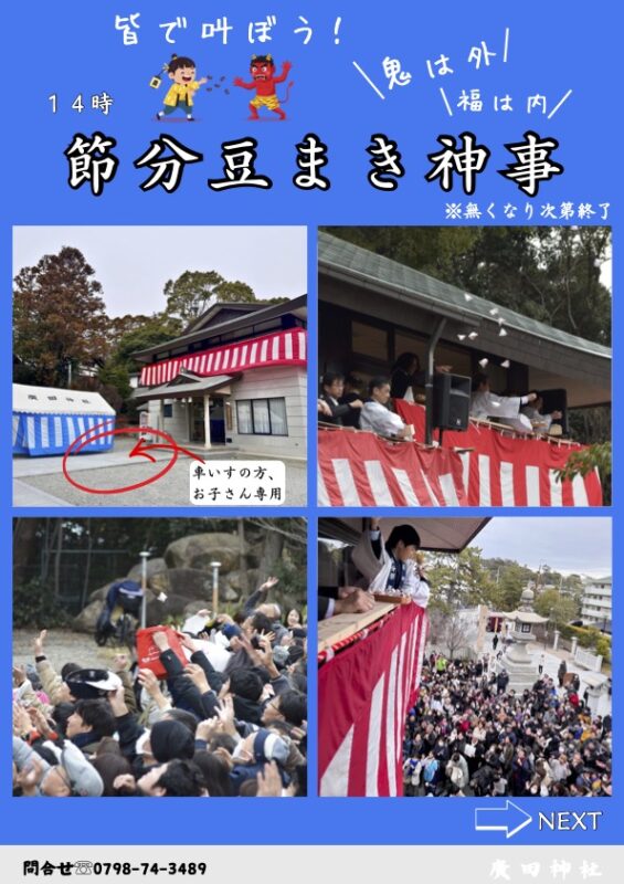 | 14時 | 豆まき神事 | 参集殿 | 無くなり次第終了 |