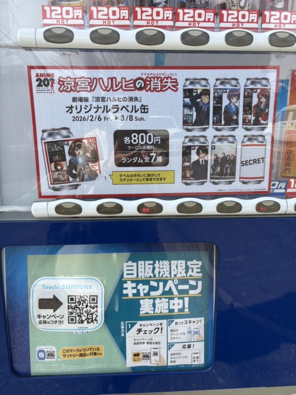 また、劇場版『涼宮ハルヒの消失』のTAG LIVE LABEL(オリジナルラベル缶)が、全国のサントリー自販機で2月6日(金)〜3月8日(日)まで販売されている。