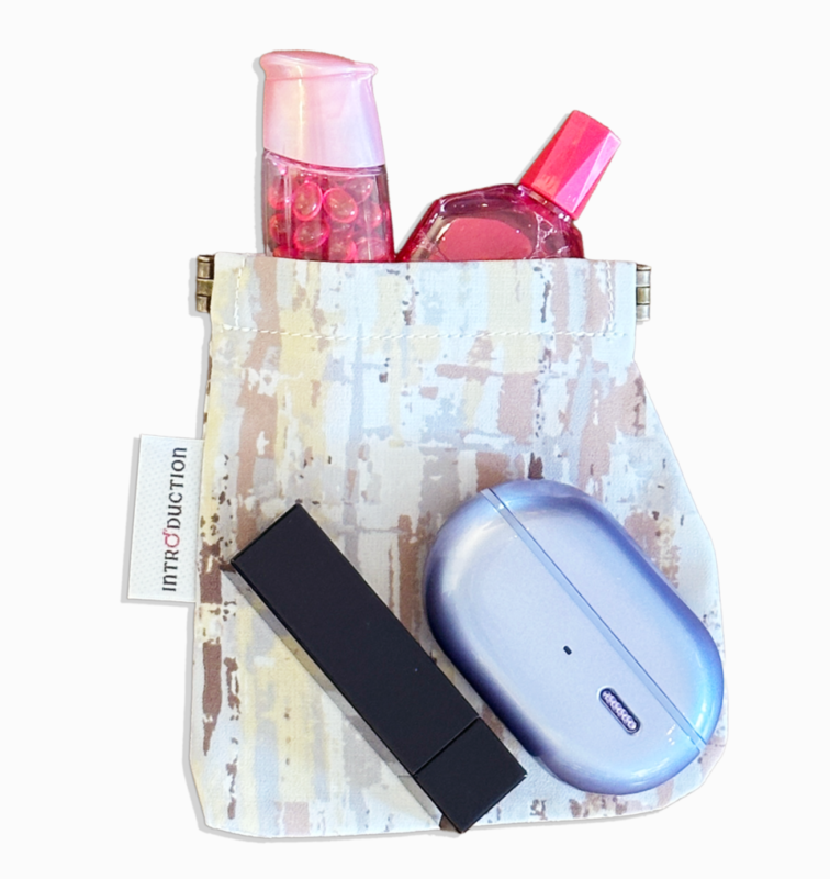 ミューラル(壁画)というシリーズ名の通り、アートのようにプリントされたミニポーチ。小ぶりながら、充電器・リップ・目薬などがしっかり入る立体設計で、バネ口タイプで開閉もスムーズです。