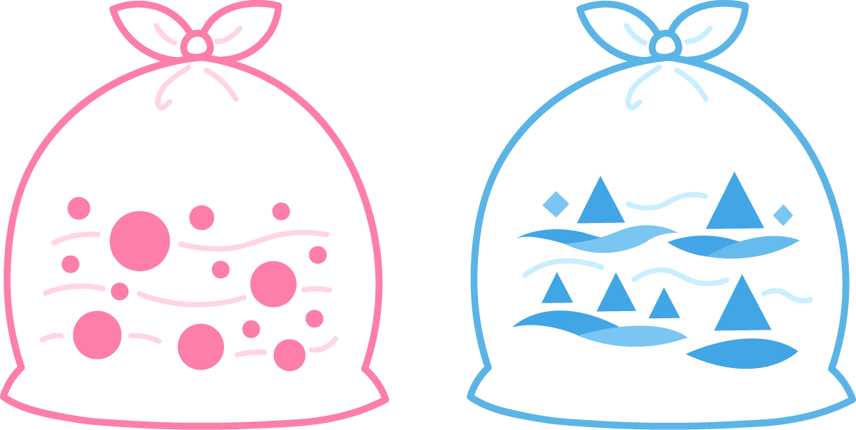 ピンクの「もやすごみ」とブルーの「共通指定袋」の2種類!