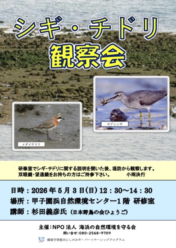 ★甲子園浜:シギ/チドリ観察会(12時半〜14時半)